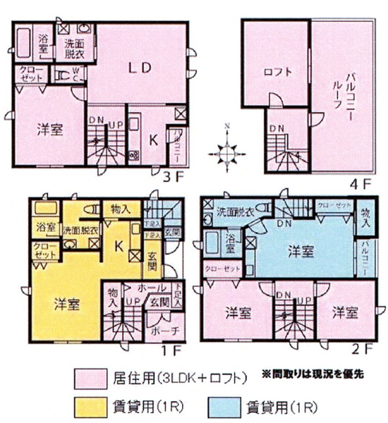 ★賃貸併用新築物件、3LDK+1K+1K
